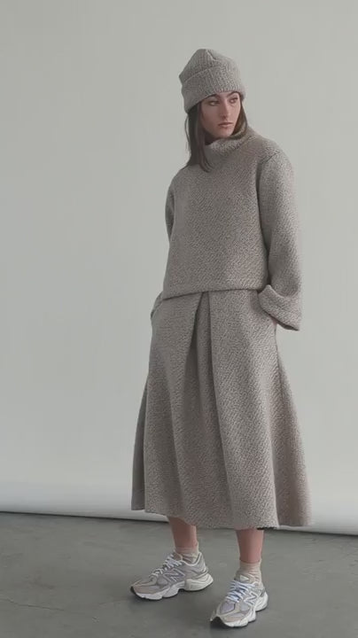 Its gentle rounded climbing neckline adds a soft frame to your face, while the relaxed fit effortlessly pairs with the matching Highland skirt and toque for a fun, coordinated look. Perfect for a fresh spin on timeless knitwear!
