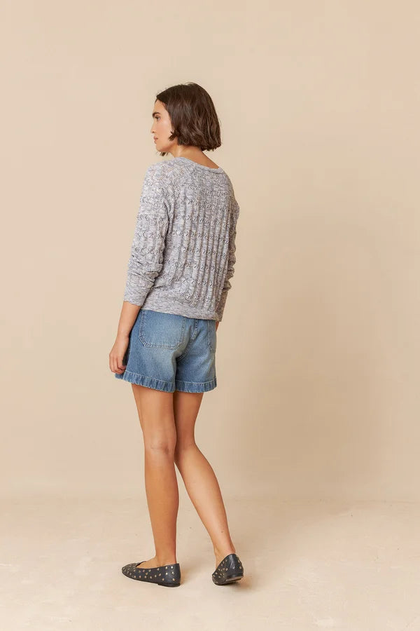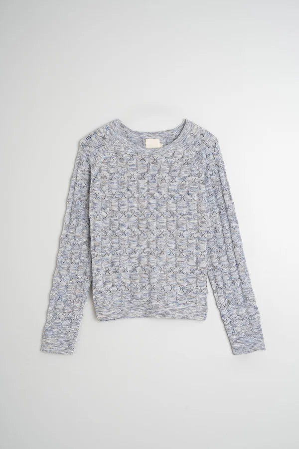 Kick your look up a notch with the Indi & Cold Lavender Sweater! Perfect for those in between days, this lightweight and stylish garment boasts a unique Pointelle knit design and a summery hue. It features a Raglan sleeve cut with a ribbed collar, cuffs, and hem for added comfort. No doubt, this sweater will become your go-to piece for effortless style every season.