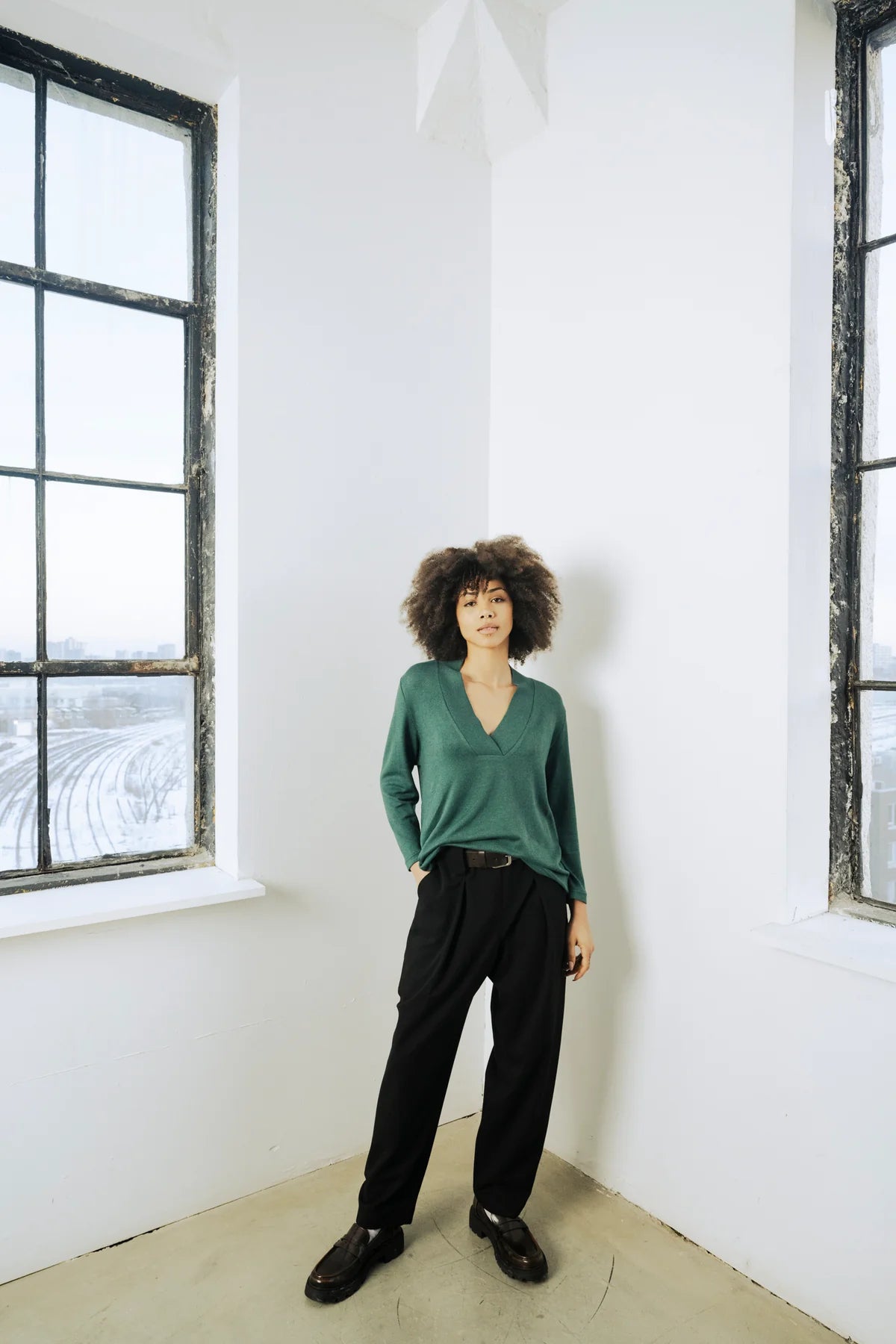 The classic black Olden Pant from BODYBAG by Jude features a high-waisted, carrot-style cut, two pleats on each side at the front, an invisible side zipper, and a single back pocket. Expertly crafted from luxurious woven flannel fabrics, this timeless silhouette is adorned with subtle details that will withstand the test of time.